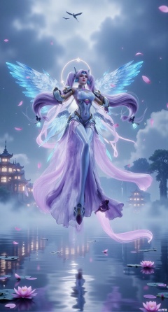 SFW,(masterpiece:1.2),best quality,1girl,solo,long hair,long dress,celestial maiden in flowing tulle gown levitates above lotus pond, ethereal mist trails from hair ribbons, mythical Penglai paradise emerges through clouds with glowing pavilions, translucent bioluminescent lotus blooms, flock of cranes gliding over water surface, ultra HD with soft 3D rendering, morning light filters through mist, falling petal rain, intricate details on scale-patterned fabric and lotus veins.(huge breasts:2.99),(full breasts:2.99),Xzhihua,Xsiyouyou,Xyanruyu,Xmoxiaonan,Xyeqingxian,Xyunwangshu,XlishaoyinY,Xxiaowu,Xyusanniang,XhuolingerHHY,Xwangqiuer,Xxuenv,XfuquY,XanmiaoyiXY,XyunyunX,Xhuangnv,Xaichen