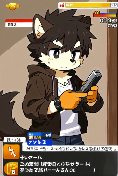 furry,1boy,random action,game ui,status_bar,<lora:electronic game style(涂鸦工坊α):0.6>,game style