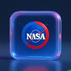 BTM, A 3D-rendered logo of NASA, with the iconic meatball insignia rendered in translucent space-grade polycarbonate, featuring embedded star constellations and orbital paths. The deep void background includes subtle Milky Way glow.