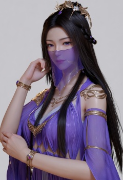 score_9,high detail,best quality,shiny skin,shiny,1girl,solo,purple_eyes,dress,breasts,long hair,black hair,jewelry,purple dress,bracelet,transparent background,hair ornament,mouth veil,white background,necklace,realistic,closed mouth,looking_at_viewer,upper_body,thighs,<lora:QQSponyzilingV1:0.8>,<lora:Pony_DetailV2.0:0.8>,<lora:皮肤凹痕:0.1>,