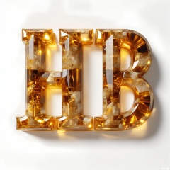 ZRSL, A set of photos of the letters "TUSIART" inlaid with tiger’s-eye quartz, golden-brown chatoyant bands shimmering under focused spotlights. The minimalist white stage directs all attention to the stone's silk-like luster.