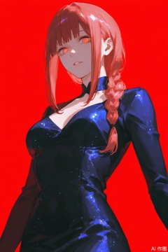 1girl,solo,looking at viewer, echo (circa), mbc dress, satin dress, makima_(chainsaw_man)