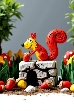 beijihui,A claymation squirrel burying an acorn so forcefully it creates a miniature earthquake in the forest floor