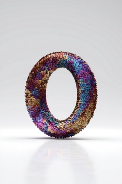 beijihui,3D icon design of letter 'O', **** of iridescent butterfly-wing scales layered in gradient hues, fluttering micro-movements, hyperrealistic, hyperdetail, natural-tech, front view, studio lighting, 100mm lens, white solid background