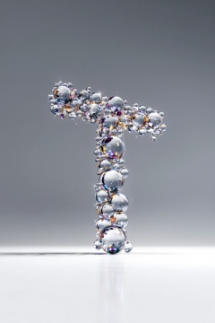 beijihui,3D icon design of letter 'T',**** of crystal dew drops on a glossy surface with refractive clarity,hyperrealistic,hyperdetail,front view,studio lighting,100mm lens,white solid background,