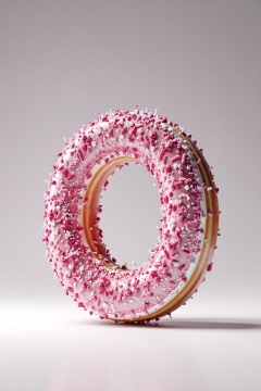 beijihui,3D icon design of letter 'O', **** of frosted donut icing with sugar sprinkles and glossy sugary finish, hyperrealistic, hyperdetail, front view, studio lighting, 100mm lens, white solid background