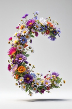 beijihui,3D icon design of letter 'C',**** of interwoven fresh flowers with vibrant multicolored petals and delicate stems,hyperrealistic,hyperdetail,front view,studio lighting,100mm lens,white solid background,