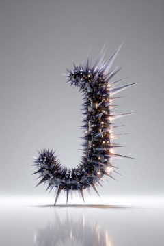 beijihui,3D icon design of letter 'J',**** of ferrofluid with magnetic liquid peaks forming fluid spikes and shimmering metallic reflections,hyperrealistic,hyperdetail,front view,studio lighting,100mm lens,white solid background,