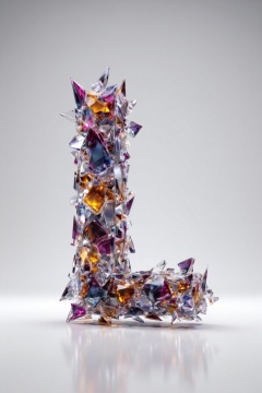 beijihui,3D icon design of letter 'L',**** of mosaic of colored glass shards with reflective facets and sharp edges,hyperrealistic,hyperdetail,front view,studio lighting,100mm lens,white solid background,