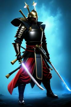 <lora:20250501_AgainGameCharacterLora:1>, armor, weapon, sword, helmet, japanese armor, holding, 1boy, samurai, kabuto \(helmet\), male focus, holding weapon, shoulder armor, holding sword, solo, glowing, electricity, full body, kusazuri, standing, katana, pants, glowing weapon, sheath, gloves, boots, facial hair, glowing sword, aura, red pants, pauldrons, lightning, vambraces, glowing eyes, belt, unsheathed, kote, looking at viewer