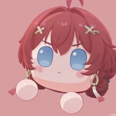masterpiece,best quality,newest,absurdres,highres,very awa, danjin, danjin\(wuthering waves\), red hair, chibi, stickers,  hair ornament, earrings, simple background, solo, braid buns, blue eyes, tuanzi\(wuthering waves\),