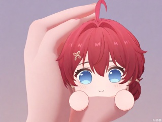 masterpiece,best quality,newest,absurdres,highres,very awa,1girl, danjin, danjin\(wuthering waves\), red hair, chibi, braid buns, blue eyes, simple_background,smile, tuanzi\(wuthering waves\),