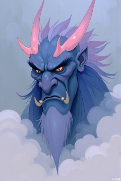 A mystical sentinel with a humanoid form that seems to be made of solidified light purple ink, with faint 淡粉色watercolor emanations and sharper deep blue ink details.