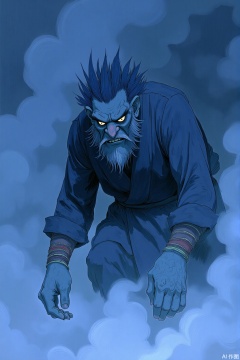 Depict a shadowy emissary emerging from a realm shrouded in perpetual twilight. Its humanoid form is defined by sharp, angular lines of deep indigo ink, casting stark shadows that dance and writhe around it. Hints of soft blue watercolor cling to its edges like lingering remnants of a fading light. Its eyes glow with an eerie, internal luminescence, piercing the gloom with an unnerving intensity. Long, skeletal fingers of black ink extend from its sleeves, their touch leaving fleeting trails of darkness. An aura of mystery and foreboding surrounds it, suggesting a messenger from a place beyond the veil of waking consciousness. It moves with a deliberate, unsettling stillness, its presence a harbinger of forgotten secrets and hidden truths. The very silence in its wake feels heavy with unspoken pronouncements and impending revelations.