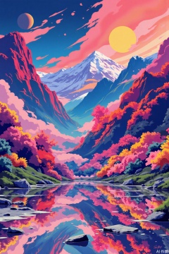 N-平面插画艺术蓝色背景治愈系插画 - F-V1A