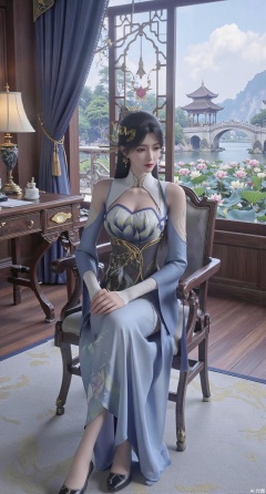 (masterpiece, best quality:1.2),1girl, solo, long dress,Ancient princess's boudoir with bright color palette,,(huge breasts:2.59),(full breasts:2.39), Hanfu-clad maiden sitting by latticed window desk in romantic daydreaming posture, classical Chinese garden through window showcasing lotus pond filled with blooming pink and white lotuses, delicate ink-wash painting style, interior featuring rosewood furniture with mother-of-pearl inlay, silk curtains fluttering in breeze, porcelain stationery set on desk, distant view of curved bridges and pavilions in garden, ultra HD rendering with crisp details on embroidered garments and translucent lotus petals,,(huge breasts:2.99),(full breasts:2.99),,XyunyunXY,Xmeining,Xjiangziyue,Xweinina,Xyunxiao,Xxiaoqingxue,Xlenhuan,Xhuajin,Xjiangbilan,XbaihehuaiX,Xyinxuehou