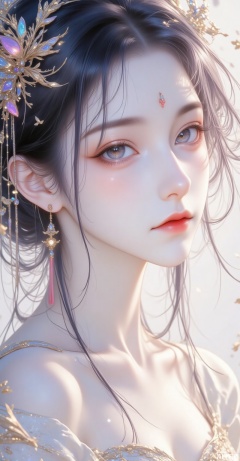 A stunning 8K fractal artwork! On a crisp white background,a majestic young woman's face is delicately rendered in intricate lines and swirling patterns. Her features are exquisitely detailed,with shimmering bright colors that seem to dance across her skin. Soft,feathery strands of hair frame her gentle expression,evoking a sense of ethereal romance. The overall effect is breathtakingly beautiful,a true masterpiece of digital artistry.,wanghong,