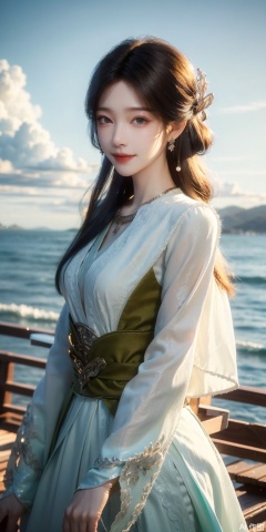 best quality, masterpiece, realistic,cowboy short,(Good structure), DSLR Quality,Depth of field,kind smile,looking_at_viewer,Dynamic pose, , Blue sky and white clouds on the beach,Masterpiece, (ultra wide angle lens: 1.2), Unity8k wallpaper, best quality, (detail shadow: 1.1), a beautiful girl, on a sea of light blue silk, translucent silk, floating light blue silk, surrealist style, minimalism, highly detailed texture, light blue, white clean background, CG rendering, light passing through clouds, 8k resolution, (motion photo: 1.2), (Fidelity: 1.4), original photos, movie lighting, 1girl,, , ,kind smile, , weddingdress,meining