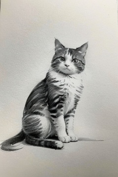 Pencil drawing,masterpiece,best quality,simple drawing,Pencil drawing,Line,Monochrome,Sketches,greyscale,1 cat,white background,