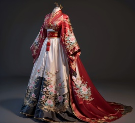 Hanfu,main red and gold,clothing design products with Chinese clothing as still life,realism,multi-color matching,high detail,edge light,