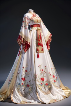 hanfu,best quality,masterpiece,colorful,dynamic angle,highest detailed,yellow white dress,(clean background:1.3),v-neck,red,fishtail skirt,