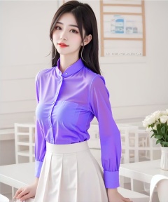 1girl,diamond earrings,water red lips,heavy makeup,close-up,black hair,long hair,solo,upper_body,<lora:绝色白衬衣短裙女孩1.1:0.8>,full breasts,skirt,purple shirt,purple collar shirt,