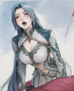 ((very awa)),(solo),highly detailed,(best quality),((masterpiece)),1girl,chi,<lora:鸽正则nbXL:0.3>,ge,<lora:chi正则100nbXL:0.7>,traditional media,painting \(medium\),watercolor \(medium\),looking_at_viewer,large breasts,<lora:王秋儿nbXL:0.8>,wangqiuer,long hair,clothing cutout,rolling_eyes,garter_straps,tears,(torn clothes),kneeling,breast,cleavage,navel,tongue_out,ahegao,blush,drooling,