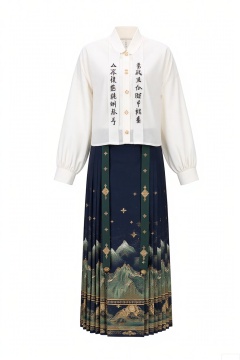 - Calligraphy in black ink on the blouse