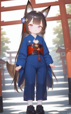 aged down,loli,loli,loli,female child,little girl,1girl,solo,petite,fox girl,fox ears,fox tail,black_hair,hair ornament,long sleeves, full body,pants,long pants,outdoors,colorful,best quality,very aesthetic,absurdres,32K UHD,sharp focus,best-quality,Emotionalization,temperate atmosphere,with a high-end texture,in the style of fashion photography,Dynamic, dynamic force picture, (Visual impact:1.2),impactful picture,offcial art,amagi \(azur lane\),cxqsxhb