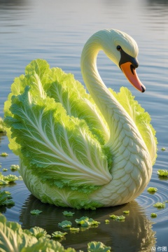 The swan's body is composed of tender and green lettuce leaves, creating a surreal and interesting effect. ,pic