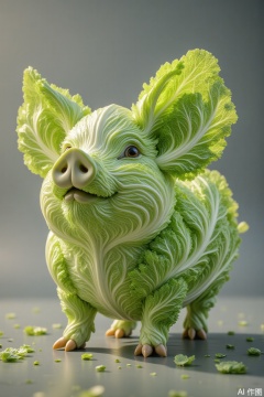 The pig's body is composed of tender and green lettuce leaves, creating a surreal and interesting effect.