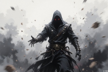 Mysterious figure behind hazy frosted glass, frosted glass texture, blurred light and shadow effect, hazy gray color scheme, blur, dynamic angle, figure is located in the center of the picture, fantasy elements,