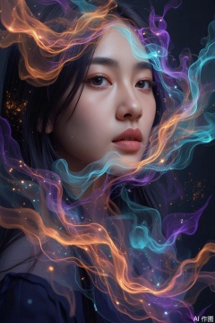 (masterpiece, top quality, best quality, official art, beautiful and aesthetic:1.2), (1girl), extreme detailed,(fractal art:1.3),colorful,highest detailed..,plns,portrait,vivid color,plbj,color-speckled background,digital-art,semi - transparent