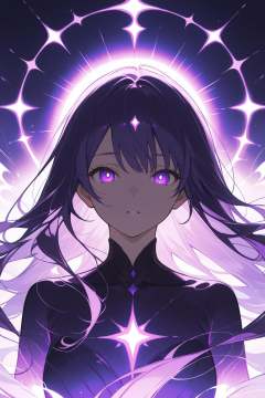 particle style,upper body portrait,She stands in a haze of purple ethereal lights,her silhouette outlined in a mysterious glow,a goddess descending from the heavens. The purple ethereal lights dance around her,creating a dreamlike aura that enhances her ethereal beauty. Her eyes sparkle with purple ethereal lights,as if containing the secrets of the universe,drawing one into a world of wonder. Her hair flows gracefully in the purple ethereal lights,adding a touch of enchantment to her already captivating appearance. With every movement,the purple ethereal lights seem to intensify,highlighting her elegance and grace.glowing,