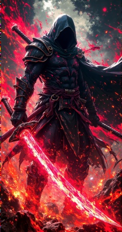 colorful,this spectral warrior emerges—a swirling storm of darkness and fury. Cloaked in shadows and wielding a blade that cuts through reality itself, he is both chaos and silence, destruction and art. Ink and energy fuse together, creating a figure that defies form yet commands presence. Is he a guardian of the void or a harbinger of doom, The answer lies in the whispers of the darkness he commands.