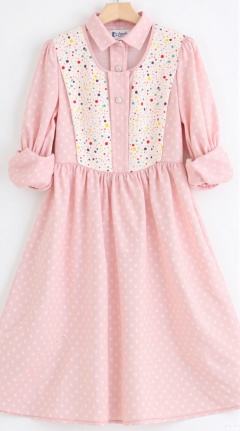 • Main body: cherry blossom pink chiffon dress, full-print colorful polka dot pattern (dial diameter 3cm randomly distributed), adopts A-shaped contour and knee-length design