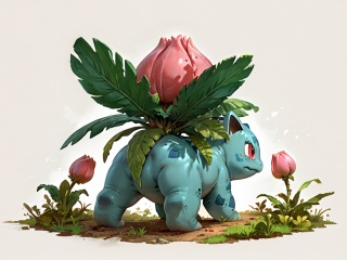 masterpiece,female ivysaur,score_9,score_8_up,score_8_up,feral,bud,a pink bud on the back,red eyes,green body,full body,simple background,(Green leaves on the back:0.8),(vines:0.6),(3 toes:1.1),pokemon \(creature\),<lora:ivysaur pony:1>,ultimate detail,(from behind:1.2),sfw