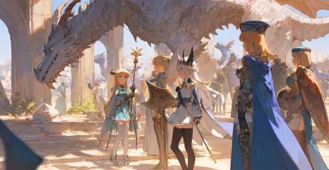 highres,extremely detailed 8k wallpaper,illustration,depth of field,great quality,masterpiece,best quality,amazing quality,very aesthetic,absurdres,Japanese fantasy style,artist:ciloranko BREAK<lora:Japanese fantasy style:0.8>, -multiple girls, thighhighs, long hair, 2girls, blonde hair, standing, dragon, cape, hat, crown, gloves, white hair, holding, dress, horns, skirt, shield