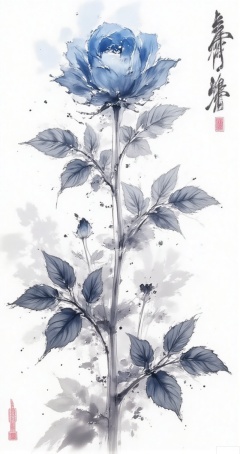 moran,lvjing,baoshi, monochrome, greyscale,sky,clouds,blue flower,no humans,blue rose,flower,rose,still life,leaf,traditional media,plant,white background,simple background,realistic,painting \(medium\),23, cover,simple background,gradient background,close-up details,outstanding style,adding a touch of dimension to your images without compromising details,close-up,