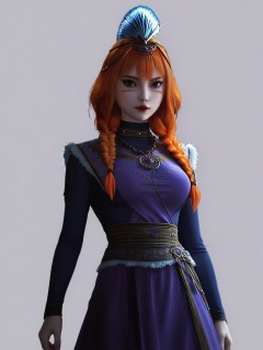 score_9,<lora:SF_SiYuDan_Pony_Realism2.3-000004:0.7>,1girl,solo,dress,orange hair,bangs, large breasts,multiple braids,twin braids,facepaint,facial mark,feathers,hair over shoulder,long sleeves,lipstick, hair ornament,standing,looking at viewer,white background,