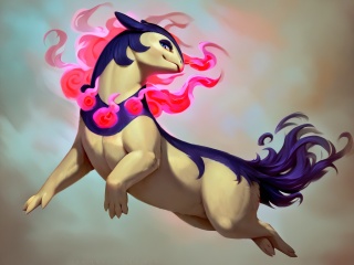 masterpiece,best quality,amazing quality,very aesthetic,high resolution,ultra-detailed,absurdres,hisuian typhlosion,feral,solo,full body,pokemon \(creature\),5 finger,(3toes:1.2),seductive_smile,looking_at_viewer,detailed fluffy fur,photorealistic details,detailed background,eyelashes,purple and blue eyes,simple background,score_9,score_8_up,score_7_up,<lora:hisuian typhlosion illustrious:1>,