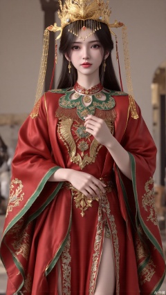 1girl, solo, red dress, jewelry, looking at viewer, long hair, dress, earrings, hair ornament, mischevious smile, perfect body, scenery, sharp focus, best quality, masterpiece, detailed outfit, illustration, perfect eyes, finely detailed beautiful anime eyes, realistic skin, intricate details, best lighting, depth of field, ultra high resolution,sitting