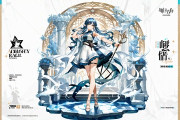 masterpiece, best quality,  copyright name, official alternate costume, character name, chinese text, game_cg_style, arknights_style, logo, pose, background, solo, looking at viewer, full bodytogawa sakiko, <lora:舟_arknights_character_presentation_ill:0.8>