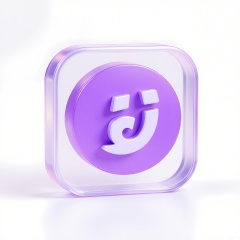 A PVC material icon of a tiny, semi-transparent music note, in a vibrant purple tint, placed on a white backdrop. The icon has a smooth, glossy surface and a playful yet modern look.