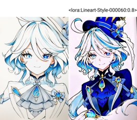 highres,absurdres,Visual impact,masterpiece,best quality,very aesthetic,amazing quality,newest,lineart,traditional media,greyscale,\\//,1girl, solo, blue eyes, looking at viewer, multicolored hair, smile, white hair, upper body, blue hair, blue ascot, ascot, long hair, streaked hair, furina \(genshin impact\), blue brooch, hair between eyes, closed mouth