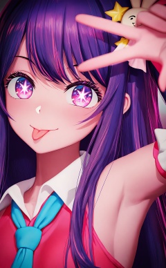 masterpiece,very aware,highres,absurdres,newest,best quality,loli,petite,high quality,chromatic_aberration,chromatic_aberration,cinematic_angle,dutch angle,//, hoshino ai \(oshi no ko\), 1girl, solo, idol, idol clothes, purple hair, tongue, star \(symbol\), star-shaped pupils, tongue out, necktie, purple eyes, multicolored hair, blue necktie, symbol-shaped pupils, long hair, sleeveless, streaked hair, w, hair between eyes, looking at viewer, sidelocks, shirt, multicolored eyes, v over eye, closed mouth, shadow, light particles, v, pink eyes, sleeveless shirt, hair ornament, bare shoulders, blush, star hair ornament, collared shirt, close-up, portrait, smile, :p, pink hair, sparkle, blurry//,//,photorealistic,<lora:MMD3——【noob】hans:1>,