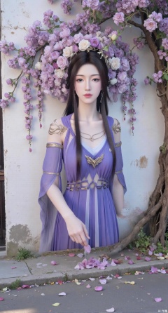 (masterpiece:1.2),best quality,On the front wall,the main body of the wall painting is a portrait of a beautiful woman with long flowing hair.hanfu girl,full body,The hair of the beautiful woman is composed of a large number of luxuriant roses. The flowers are dense and cover the top of the girls head. It seems that I have brought a gorgeous flower hat to the young girl. These flowers cover the whole wall densely. Dense long branches hang down and many petals fall on the ground. The details of the flowers are lifelike,the roots are on one side,the far view is deep,the wide angle is super wide,the real photos,the realistic style,the 32k super clear,and the colors are gorgeous,,XyunyunXY,Xmeining,Xjiangziyue,Xweinina,Xyunxiao,Xxiaoqingxue,Xlenhuan,Xhuajin,Xgufenghuaqiang,XyouqianxueK,XzilingK,Xg36qipaoCOS