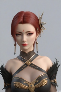 score_9_up,1girl, solo, breasts, looking at viewer, short hair, hair ornament, gloves, dress, cleavage, bare shoulders, brown eyes, jewelry, medium breasts, closed mouth, upper body, red hair, earrings, elbow gloves, black dress, makeup, halterneck, forehead mark,YaFei