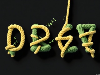 XTZT, The word "PEACE" is spelled out in refreshing green and yellow ropes against a black background. The ropes, mimicking natural vines with moss-like bumps, convey a sense of tranquility. Centered and serene, "PEACE" embodies peace and harmony, ideal for calming and serene contexts.