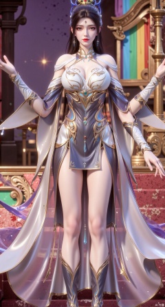 (masterpiece:1.2),best quality,a 3D rendering of a young woman posing in a futuristic outfit She is standing on a stage with a rainbow-colored background The woman is wearing a strapless, metallic bodysuit with a sweetheart neckline and a ruffled skirt that falls below her knees The bodysuits are covered in a shiny, iridescent material that reflects the light and creates a rainbow effect She has long dark hair styled in loose waves and a small flower in her hair The overall aesthetic of the image is futuristic and edgy.(huge breasts:2.99),(full breasts:2.99),,XliushenWDDk,Xziyanlonghuang,XjiningshuangX2,XlimuwanXJCB,XcaiyunxianziK